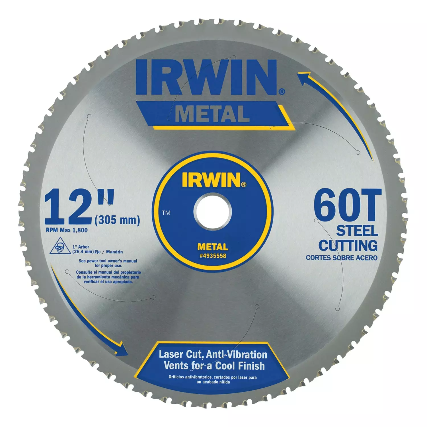 The IRWIN 12-in 60-tooth segmented carbide circular saw blade is a dependable power tool accessory. The product is manufactured with metal cutting-grade carbide teeth that accommodate all types of steel cutting applications. The saw blade also features laser cut, anti-vibration vents that ensure a cool and smooth finish. It’s time to switch to this circular saw blade for all your metal cutting needs. The carbide teeth contribute to a fast and effortless cut through the toughest materials. Additionally, the blade is designed to reduce wear and provide a longer life so you can get the best value for money. Shop this 60T saw blade and other IRWIN products today.