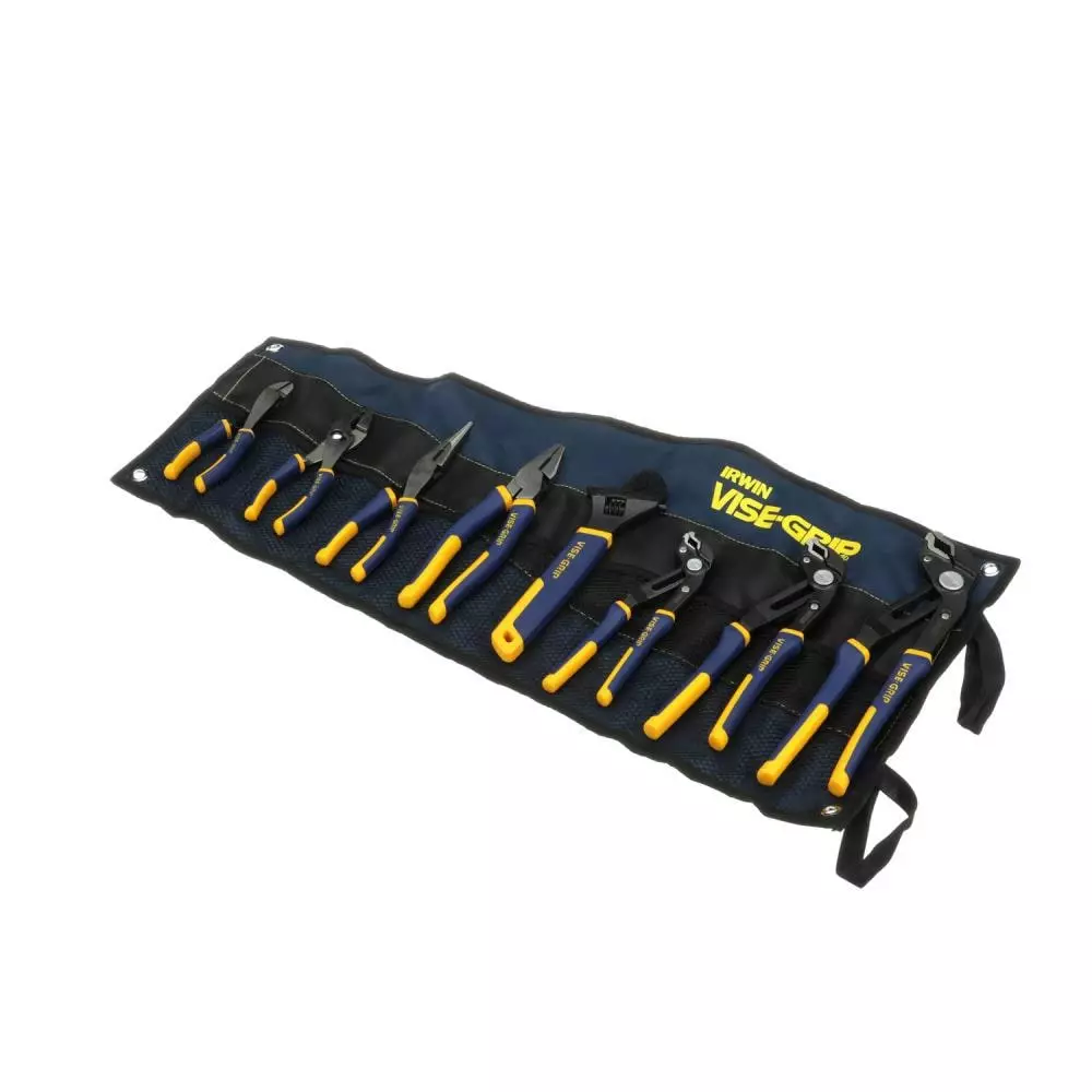 The IRWIN VISE-GRIP GrooveLock™ Pliers Set, 8 Piece, features the most commonly used tools fitted with non-slip, anti-pinch, ProTouch™ grips for increased comfort and reduced hand fatigue. GrooveLock pliers utilize the Press-n-Slide button for 2X faster adjustment than traditional groove joint pliers. This set includes cutting, slip joint, long nose, linesman’s, and 3 GrooveLock pliers as well as the adjustable wrench. Backed by the IRWIN Lifetime Guarantee.
