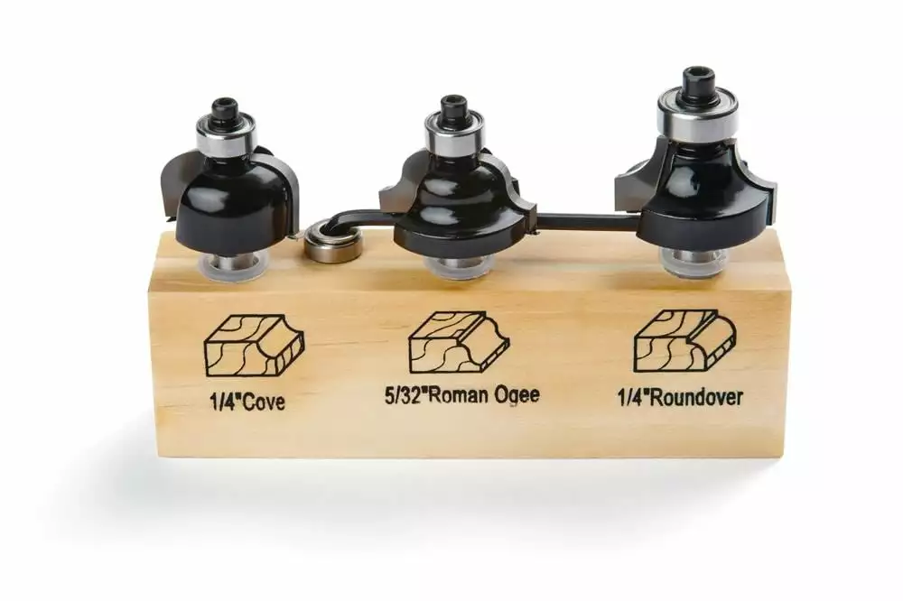 - Set includes: 1/4-in cove, 5/32-in roman Ogee, 1/4-in round over router bits