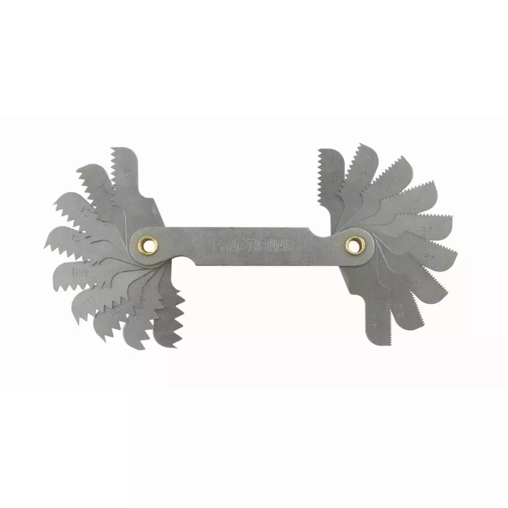 - Standard thread pitch gauge measures the number of threads per inch