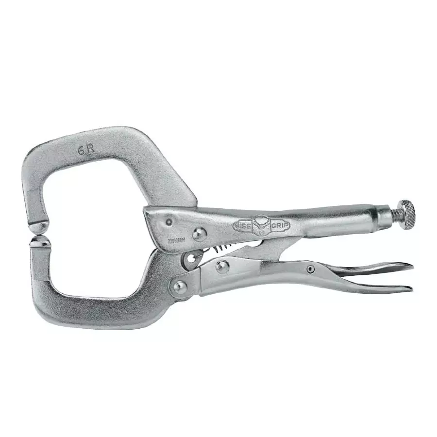 Wide-opening jaws provide greater versatility in clamping a variety of shapes. Turn screw to adjust pressure and fit work. Stays adjusted for repetitive use. Constructed of high-grade heat-treated alloy steel for maximum toughness and durability. Guarded release trigger quickly unlocks and protects from accidental release.