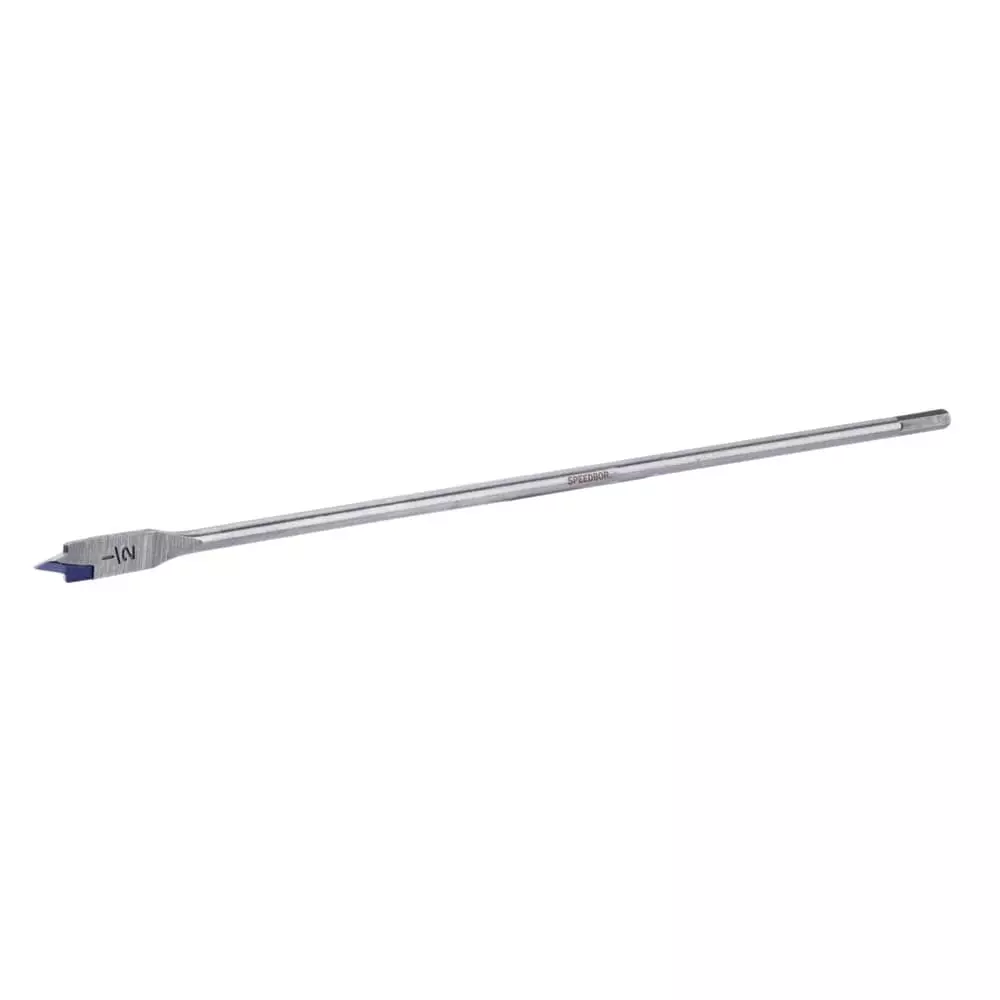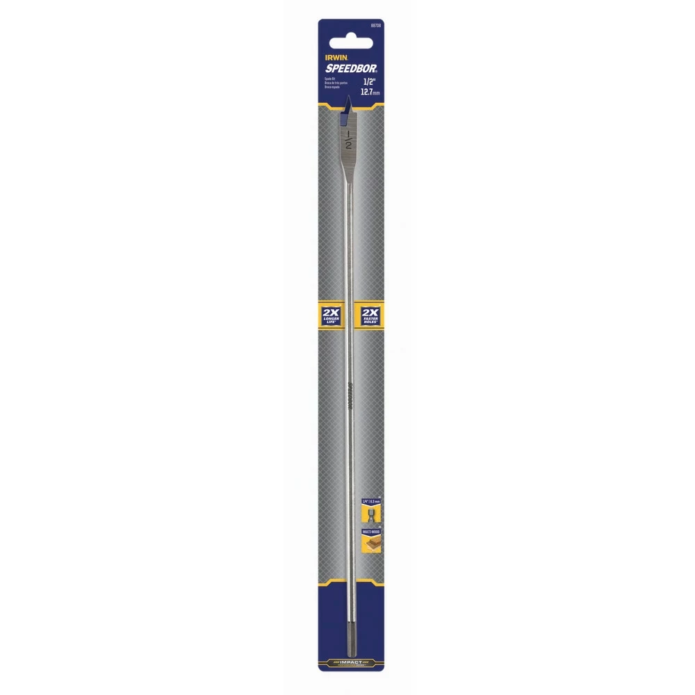 The improved SPEEDBOR Spade Bits now last 2X Longer and cut 2X Faster. Next-generation SPEEDBOR® Spade Bits feature a chamfered cutting edge for durability in cutting wood and optimized point tip that is wider and longer than previous IRWIN spade bits to minimize splintering and control speed. Patented Blue-Groove cutting edge allows for a large cutting area for aggressive removal of wood chips and fast drilling.