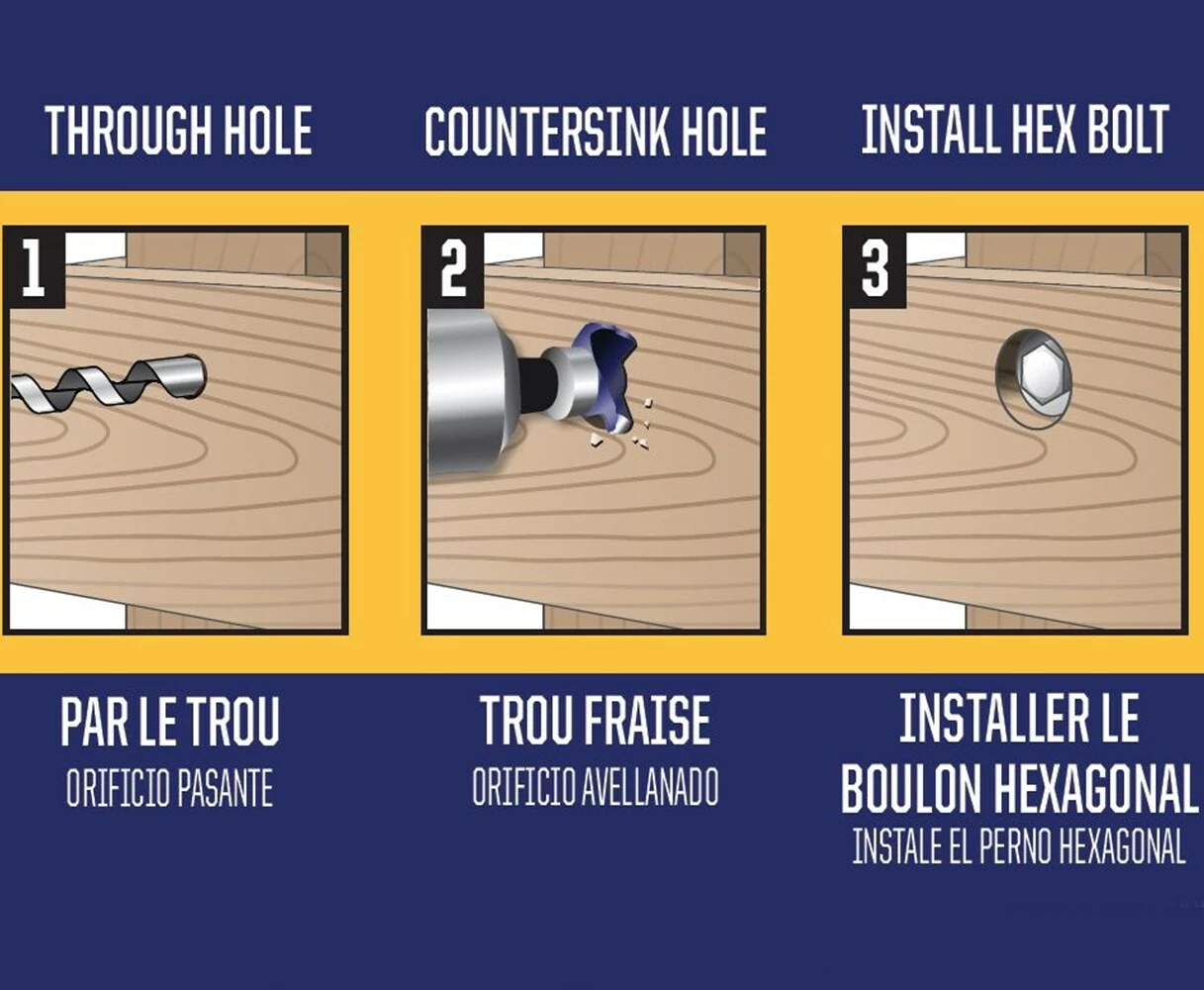 - 2-In-1 design drills both the through hole and countersink for hex bolt and washer installation